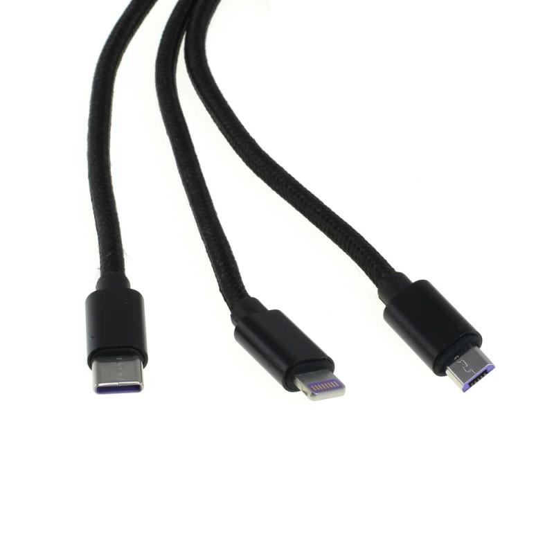 OTB 3-in-1 Charging Cable - USB-A to Lightning, USB-C, MicroUSB - 1m