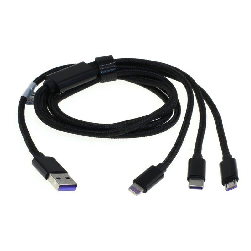 - 3in1 cable with Lightning connector, Micro USB connector, and USB Type C-Stecker