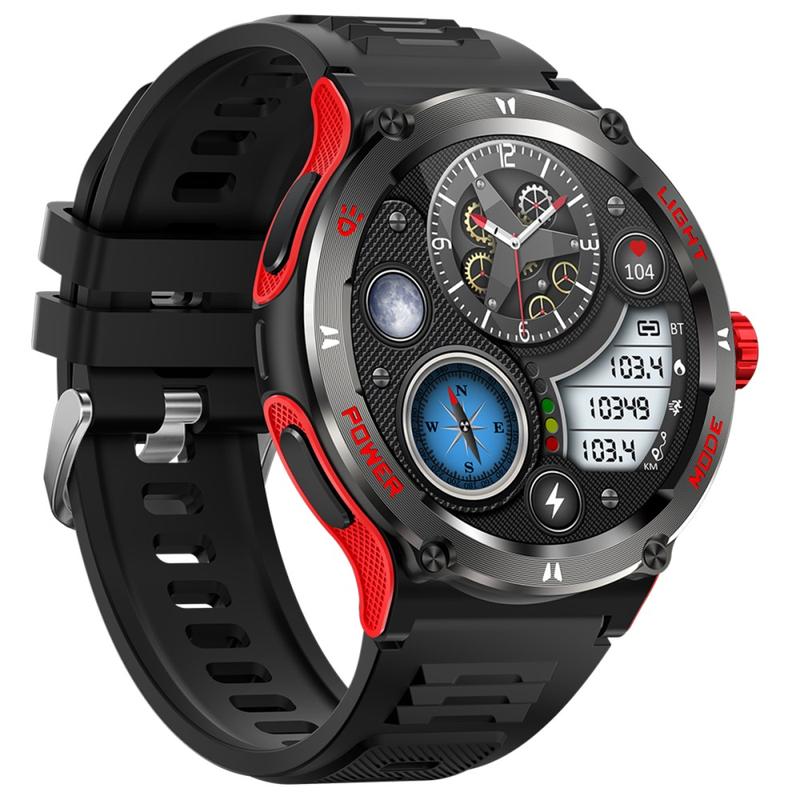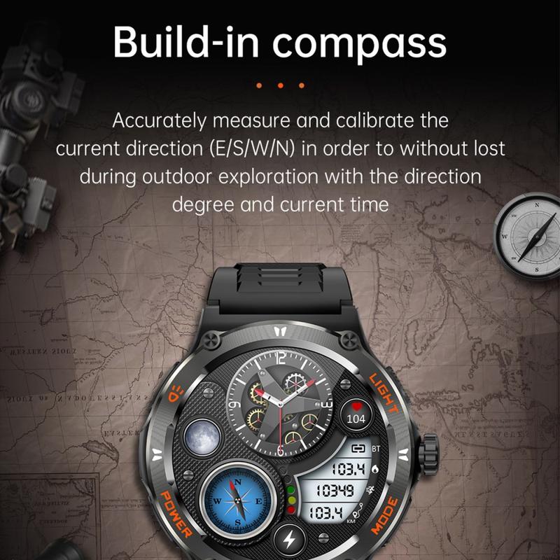 Outdoor-Style Waterproof Smartwatch KT76 w. Compass, Flashlight - 1.53"