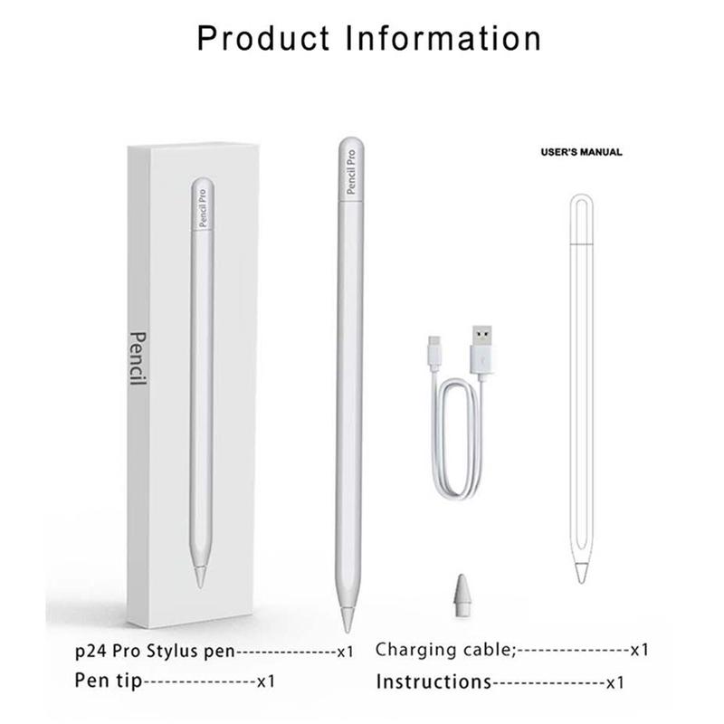 P24 Pro Magnetic-Charge Stylus for iPad - Wireless Pencil with Replaceable 1.7 mm Tip, 10 h Battery, Type-C Backup Cable