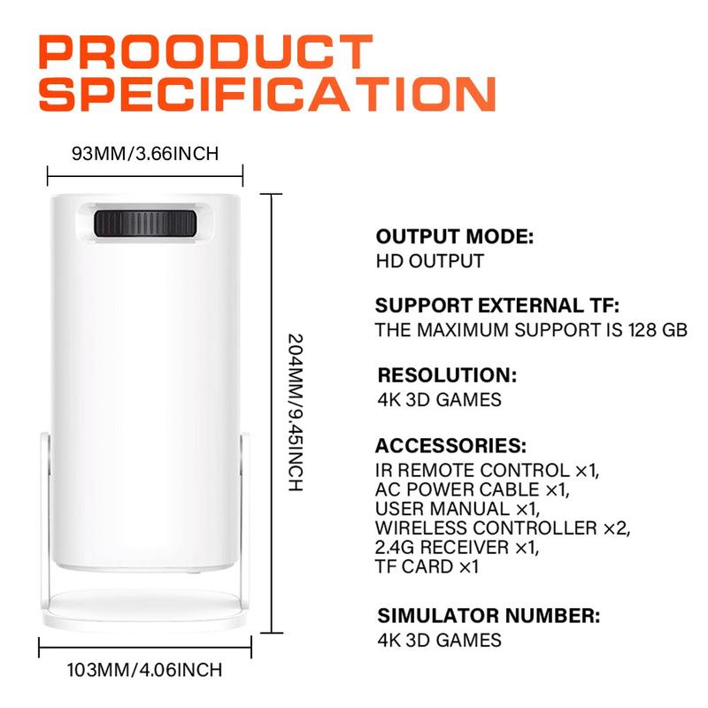 - 2-in-1 Design: Combines a smart projector and gaming console for seamless entertainment. Enjoy movies, games, and apps all in one device.
