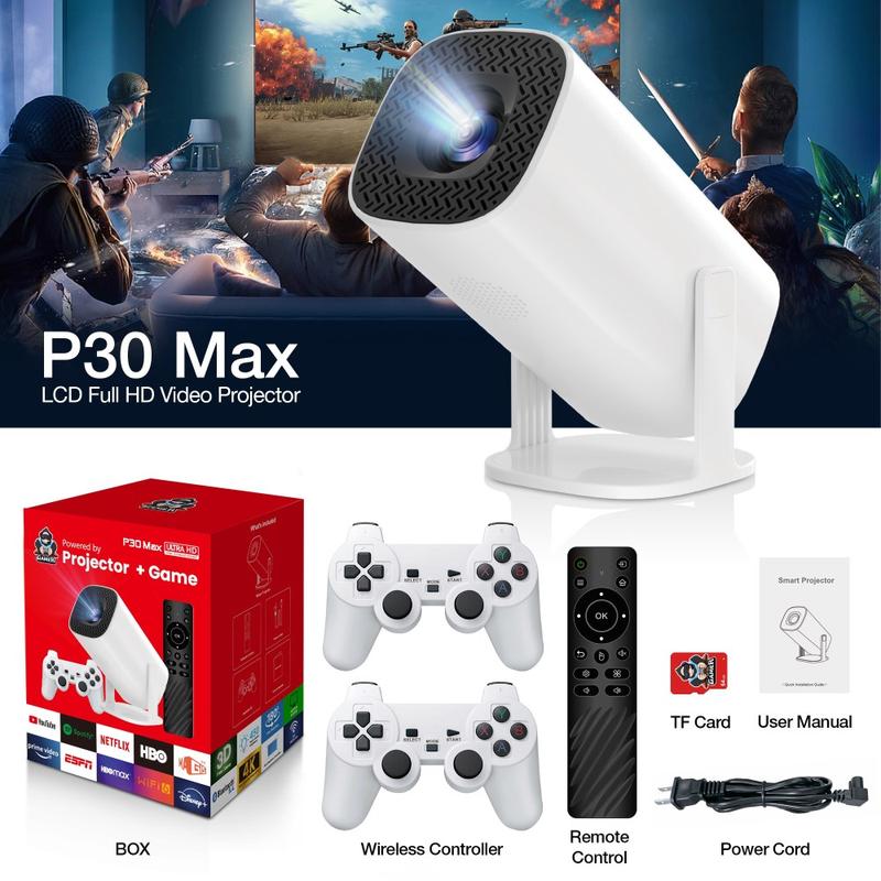 The P30 Smart Projector and Gaming Console is a multifunctional entertainment hub that combines the capabilities of a powerful projector with a gaming console. Featuring Android 11, 4K support, and WiFi6 connectivity, this device is perfect for creating an immersive home theater experience or enjoying gaming on a large screen.