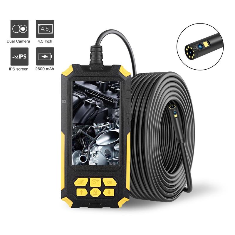 P50 5m Hard Wire Portable 4.5 inch Screen Industrial Pipe Endoscope HD 5.5mm Dual Lens IP68 Waterproof Inspection Camera