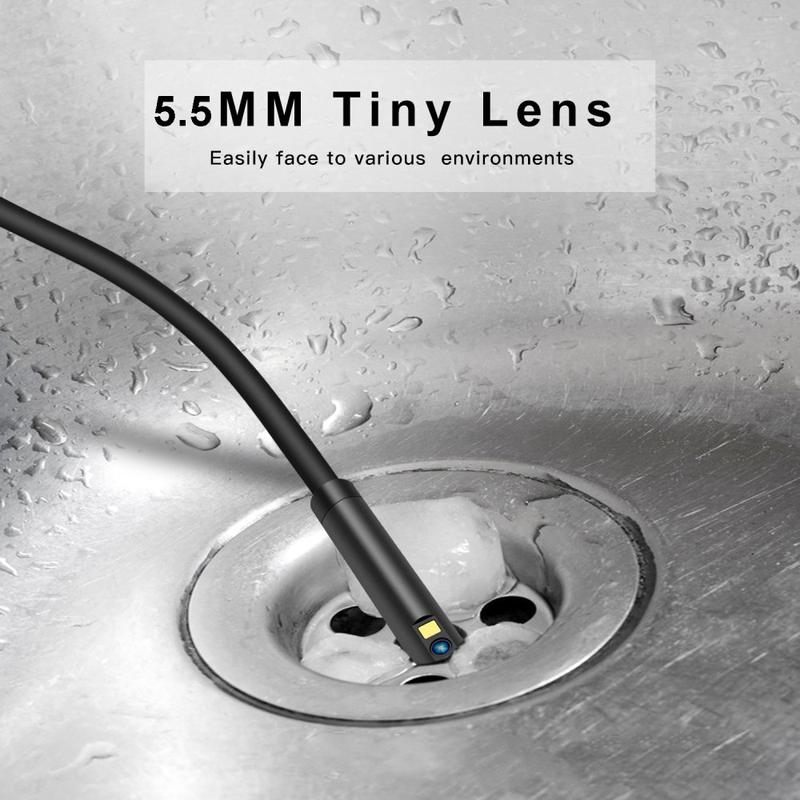 5.5mm dual camera lens and 5m hard wire, easy to get to small corners