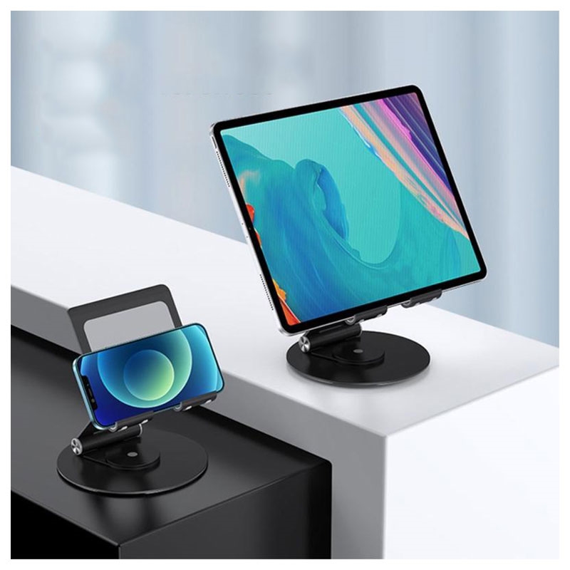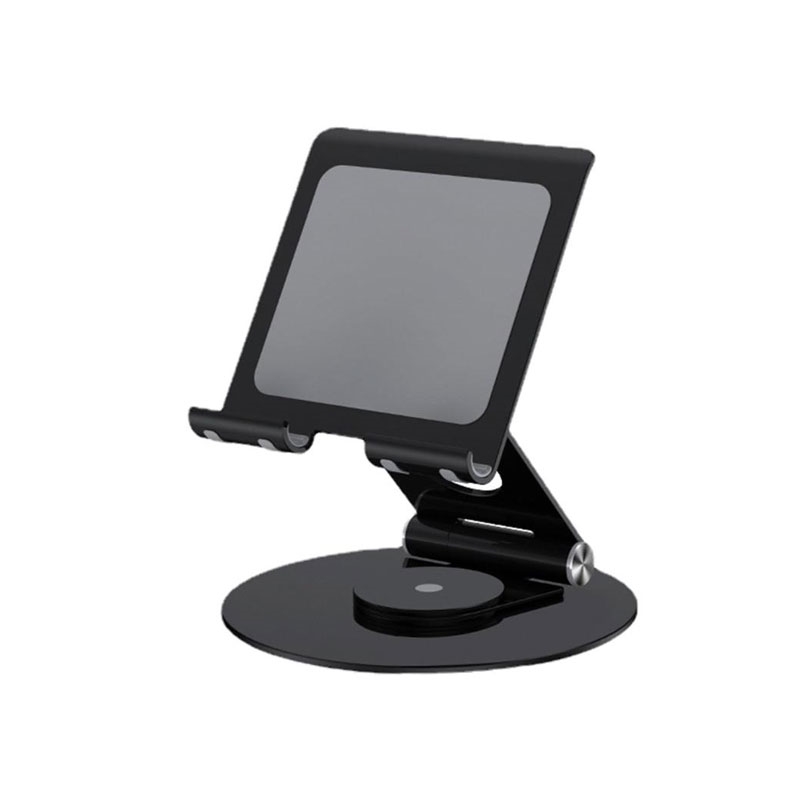 P57 Multifunction Desktop Phone Stand Folding 360° Rotating Metal Tablet Holder for Live Streaming - Black
