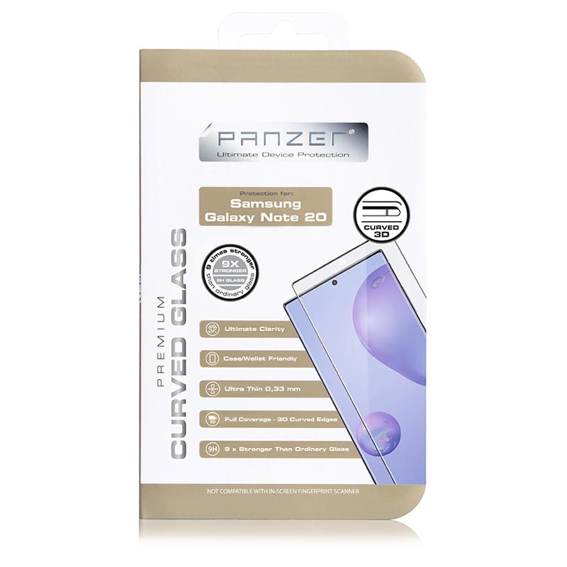 Panzer Premium Curved Tempered Glass Screen Protector for Samsung Galaxy Note 20 - 9H, 0.33mm