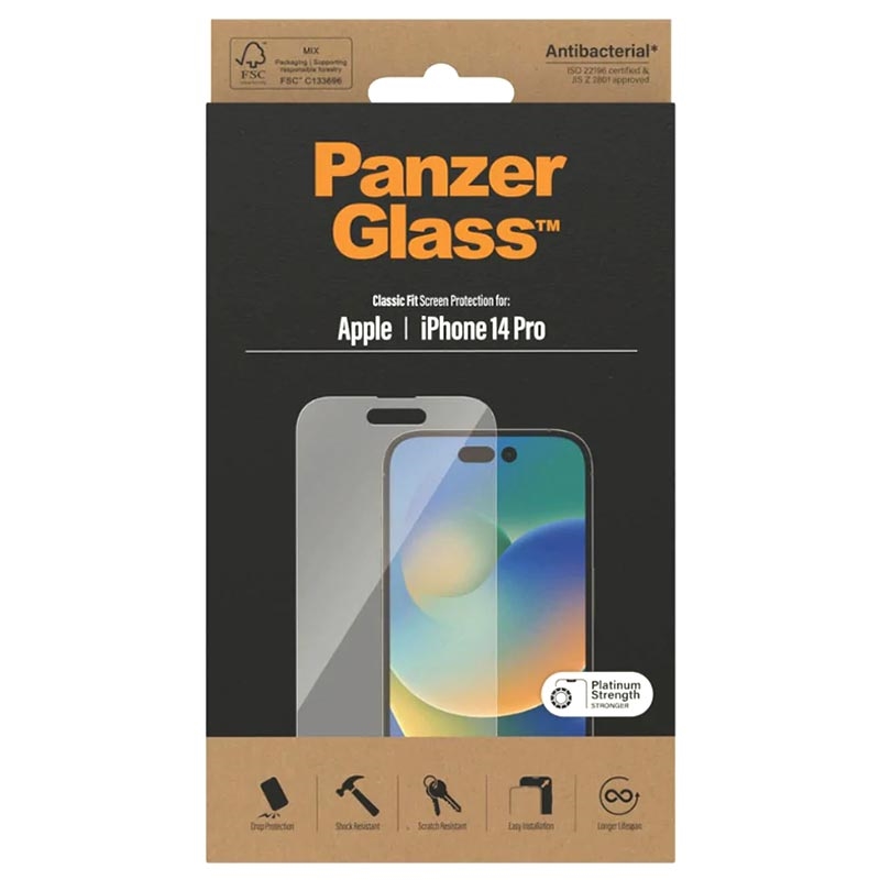 PanzerGlass Classic Fit AntiBacterial Tempered Glass Screen Protector for iPhone 14 Pro