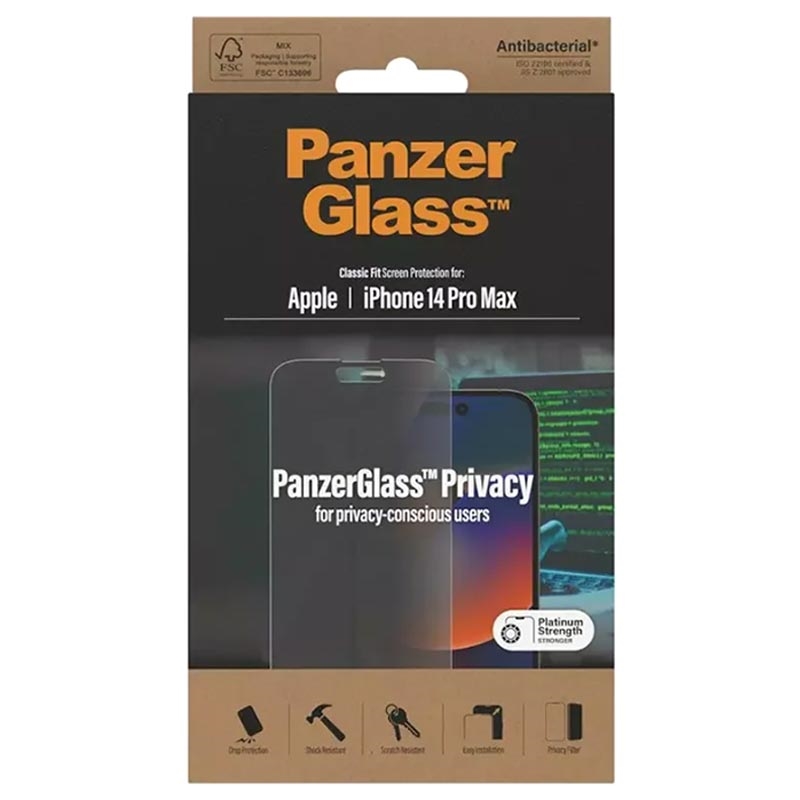 PanzerGlass Classic Fit Privacy AntiBacterial Tempered Glass Screen Protector for iPhone 14 Pro Max