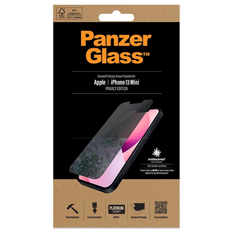 PanzerGlass Privacy AntiBacterial Tempered Glass Screen Protector for iPhone 13 Mini