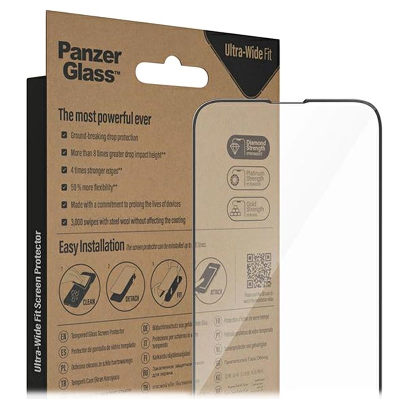 Give ultimate protection to the display of your iPhone 13 Pro Max, iPhone 14 Plus with PanzerGlass Ultra-Wide Fit screen protector.