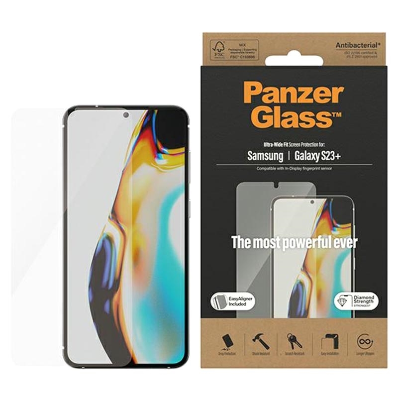 PanzerGlass Ultra-Wide Fit AntiBacterial Tempered Glass Screen Protector for Samsung Galaxy S23 Plus 5G (Galaxy S23+ 5G)