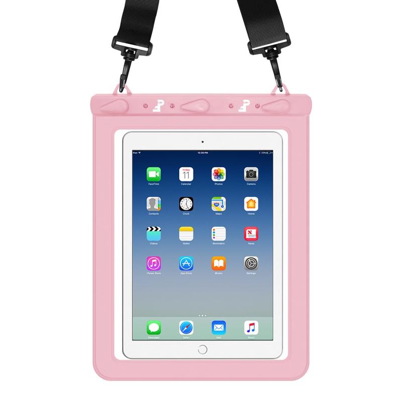 This waterproof bag is compatible with tablets up to 13 inches, ideal for diving, swimming, and underwater photography