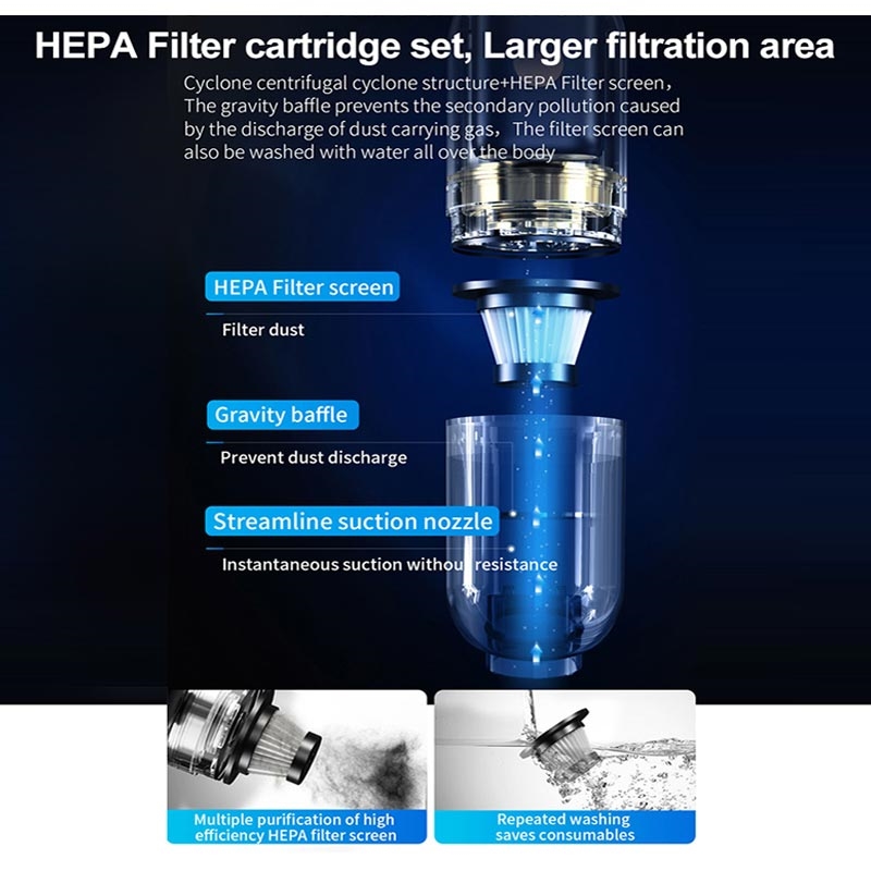 This handheld vacuum cleaner offers the perfect mix of portability and cleaning power. Its cordless design, strong suction, and LED lighting make it suitable for both quick clean-ups and deep cleaning, whether at home, in the office, or on the road.