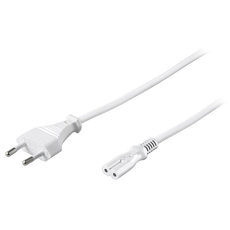 Power Cable Euro Plug / Double Nut Jack - White - 3m