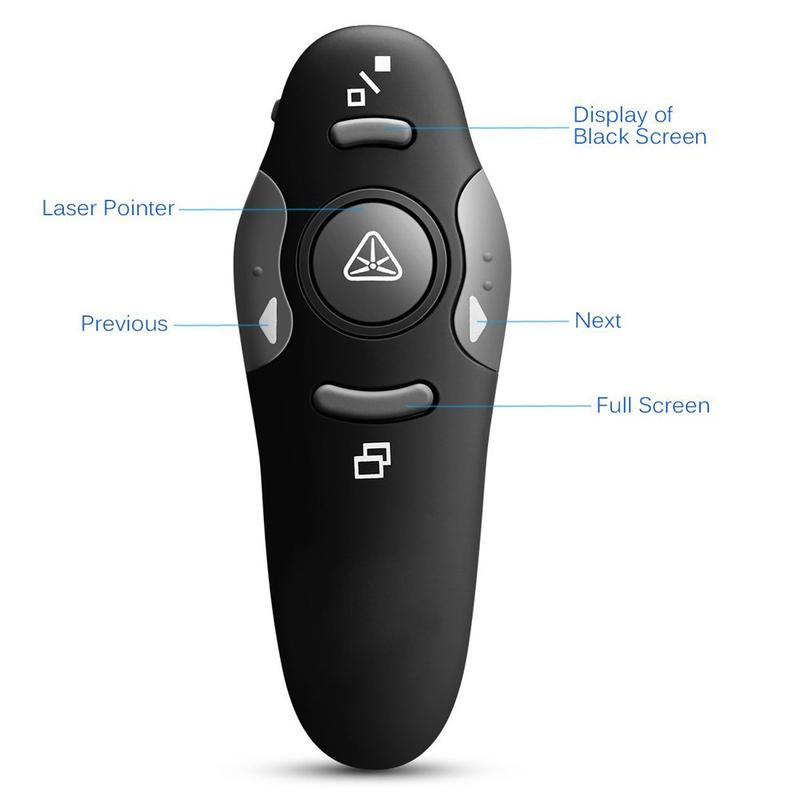 - Red Laser Pointer: Equipped with a bright red laser pointer to effectively highlight key points on your slides, ensuring audience engagement.