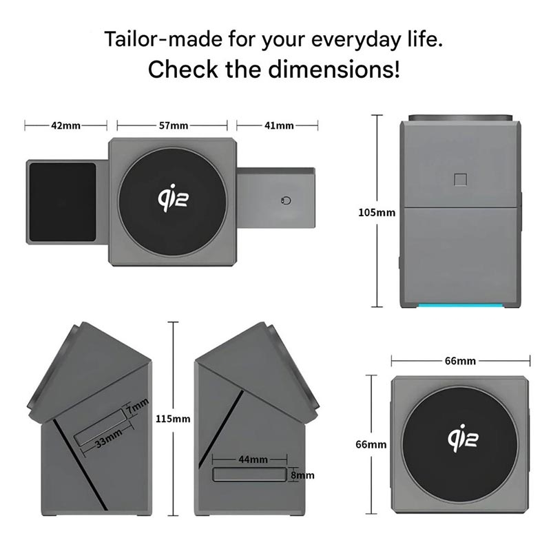 The Qi2 magnetic wireless charger 15W is a refined 3-in-1 charging solution designed for modern Apple users who value both performance and design. Its engineered rotatable construction allows the charger to transition from a compact cube into a fully functional charging station, creating a clean, elegant setup for everyday use. With fast Qi2 magnetic charging, precise alignment, and a space-saving form, it delivers a seamless charging experience at home, at the office, or while travelling.