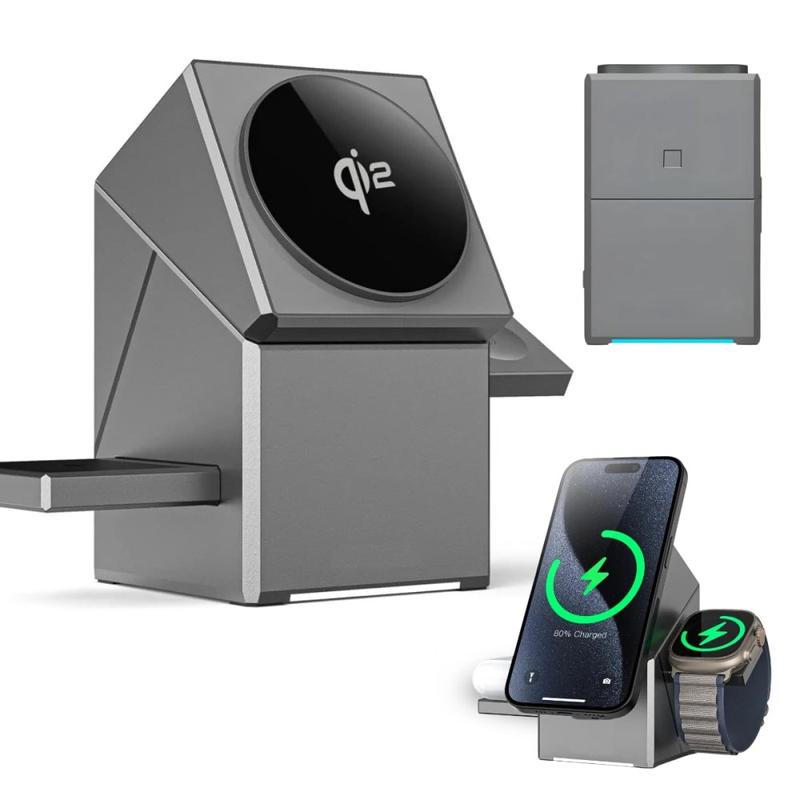 - Premium 3-in-1 charging station for iPhone (12-17), Apple Watch, and AirPods