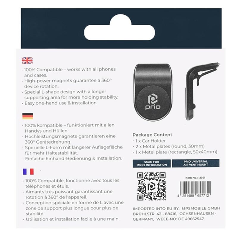 Prio L-Shape Universal Magnetic Air Vent Car Holder for Smartphones