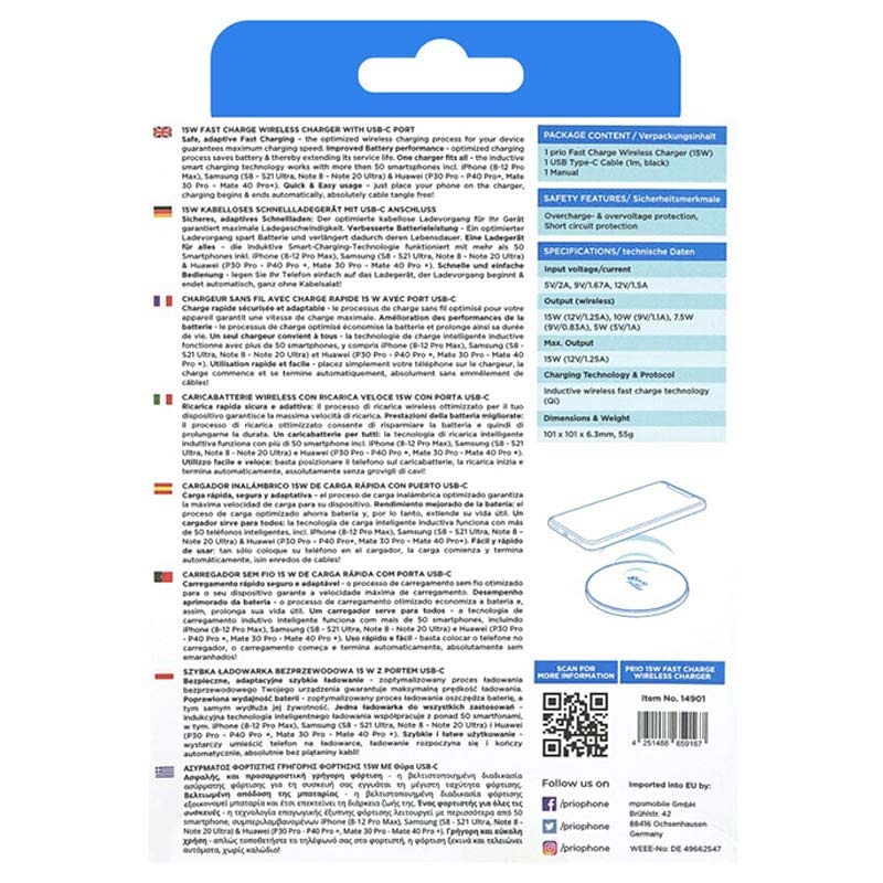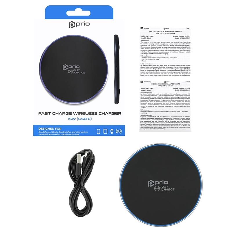 Prio Universal Fast Wireless Charger - 15W, USB-C