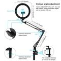 LED ring light can be mounted on the holder and take it anywhere, it can also be removed from the stand at any time, the tripod ball head can 360 degree rotating can free to adjust to any angle (The holder is not included)