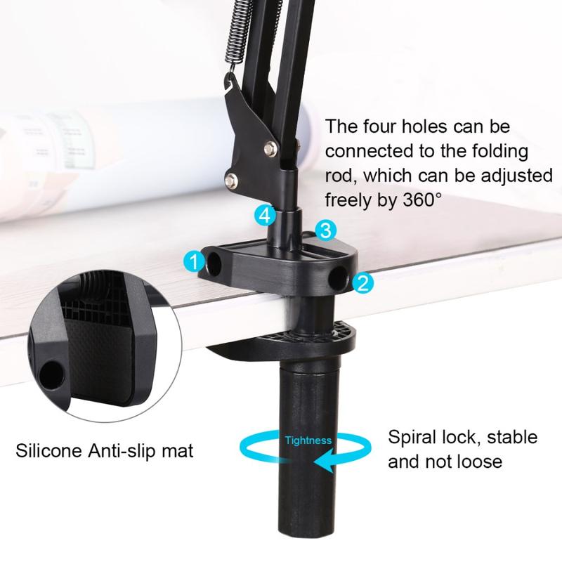 The base clamp will be compatible with any different thicknesses table/platform. It enables you to release your hands, which is very practical lazy mount holder