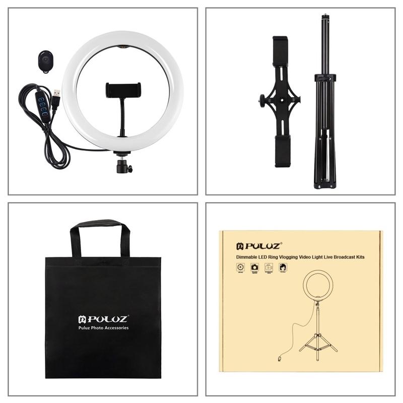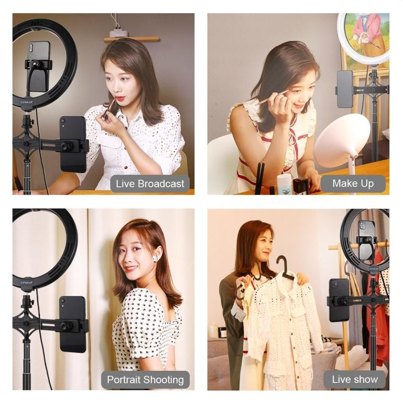 PULUZ PKT3066B 10.2" LED Selfie Ring Light Cell Phone Clamp Tripod Stand for YouTube Blogger Video Shooting