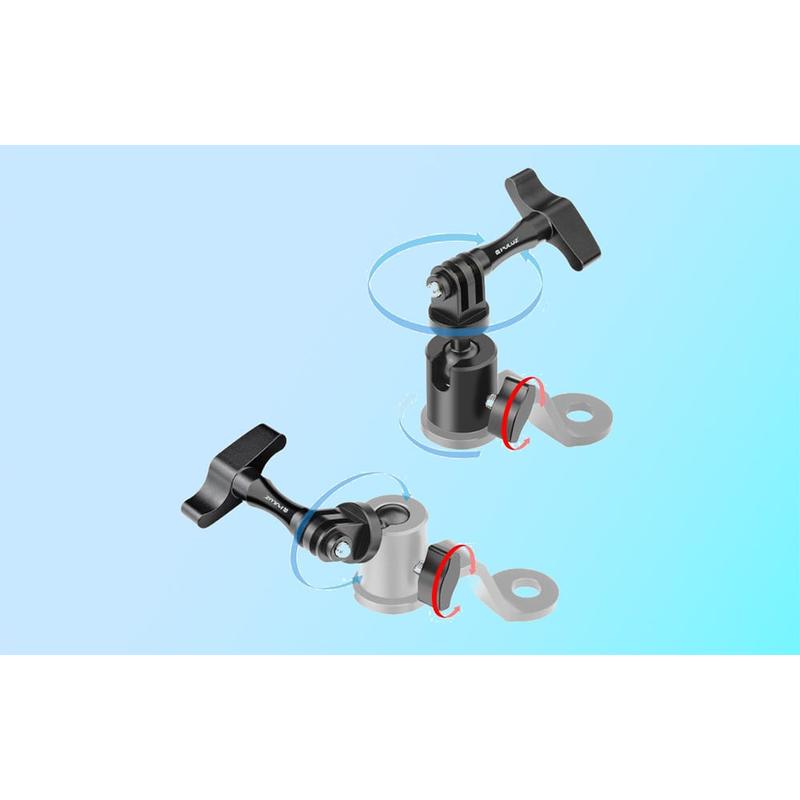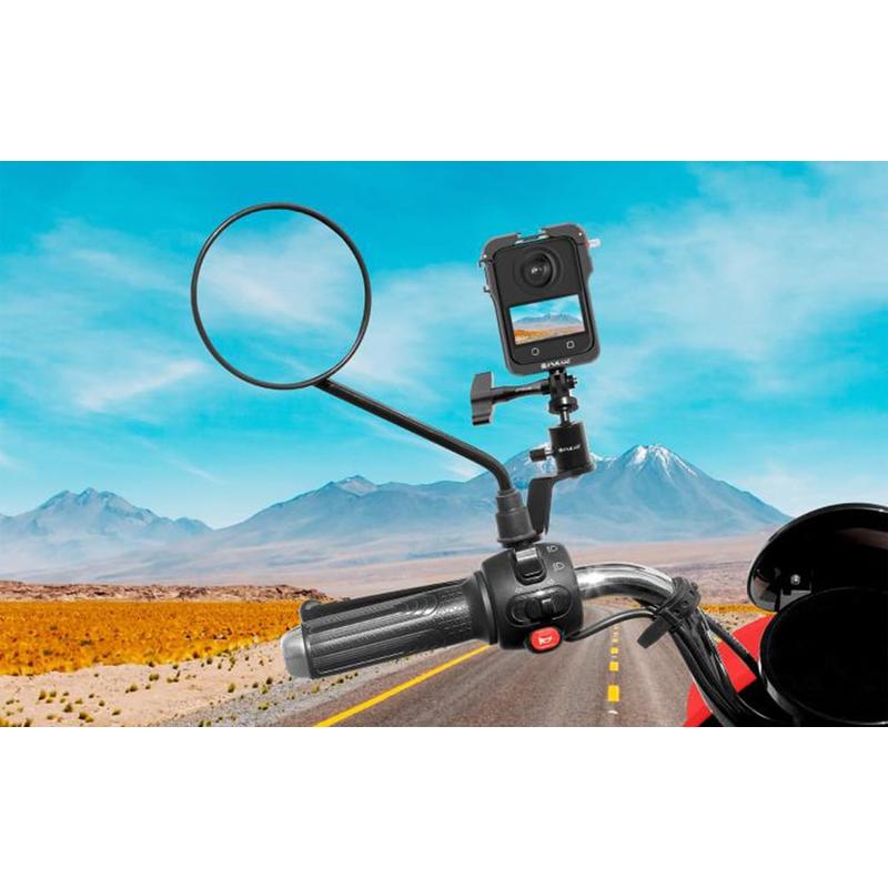 • Puluz PU1056B Aluminum Motorcycle Rearview Mirror Camera Mount - 360-Degree Rotation, 1/4" Thread + GoPro Mount, Up to 2kg Load, Fits 10mm Mirror Bolts