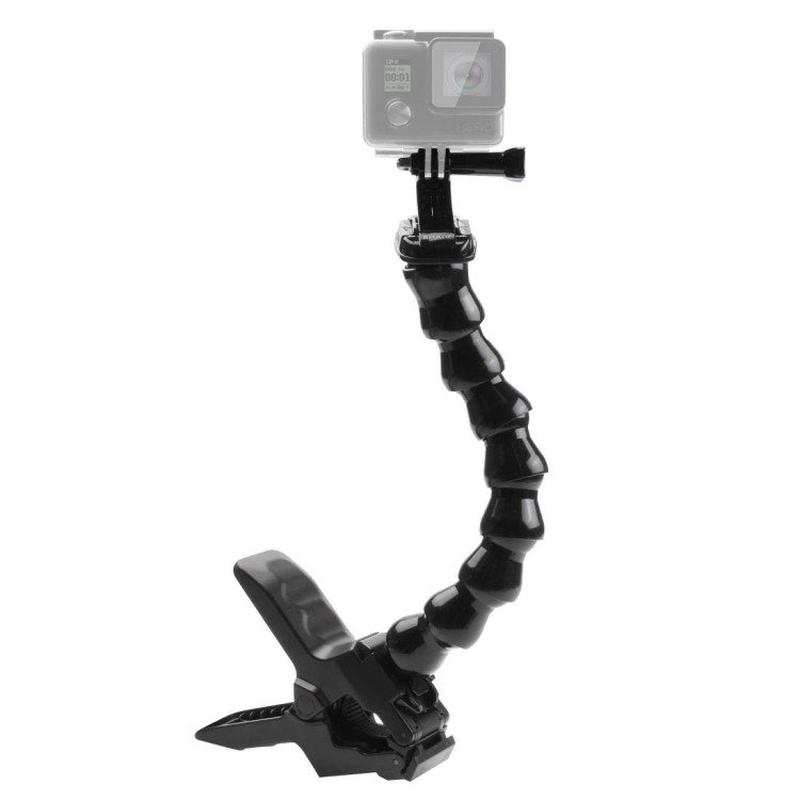 The bracket allows you to mount sports cameras type GoPro or Osmo Action. It is equipped with a strong latch, which holds objects securely and allows you to clamp it on things not thicker than 6 cm. Its shaft is constructed of segments that allow for comfortable adjustment, which gives the possibility to adjust the camera to your needs.