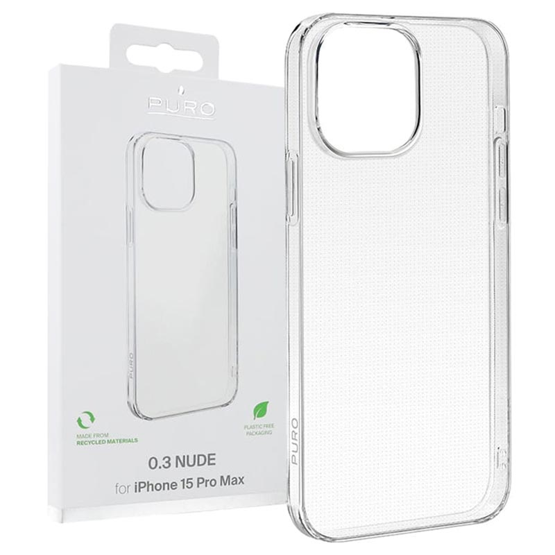 The 0.3 Nude cover by Puro shields the delicate finish of your iPhone 15 Pro Max.