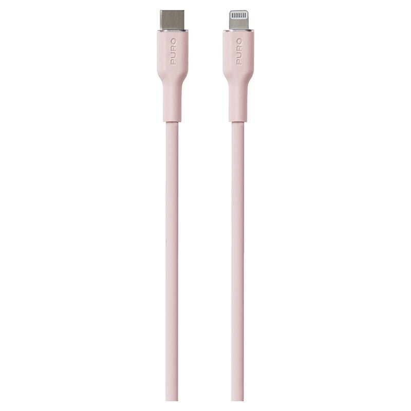 Soft cable with USB-C and Lightning connector made of soft-touch silicone in dusy pink colour.