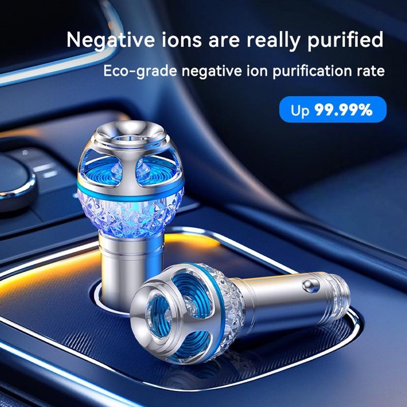 Refresh your driving environment with the Q1 car air purifier ionizer, a compact in-car air freshening solution designed to help reduce unpleasant smells and create a cleaner-feeling cabin atmosphere. With a sleek metal and aluminum alloy body, silent operation, and elegant blue ambient lighting, this car gadget combines practical everyday use with a modern interior-friendly design.