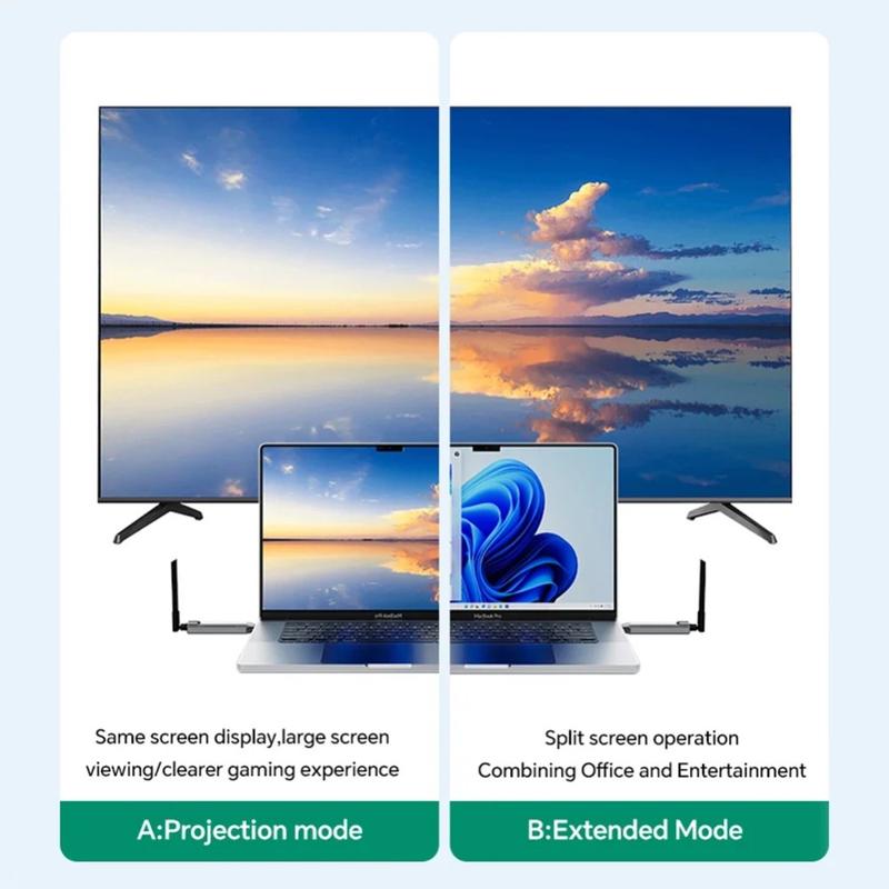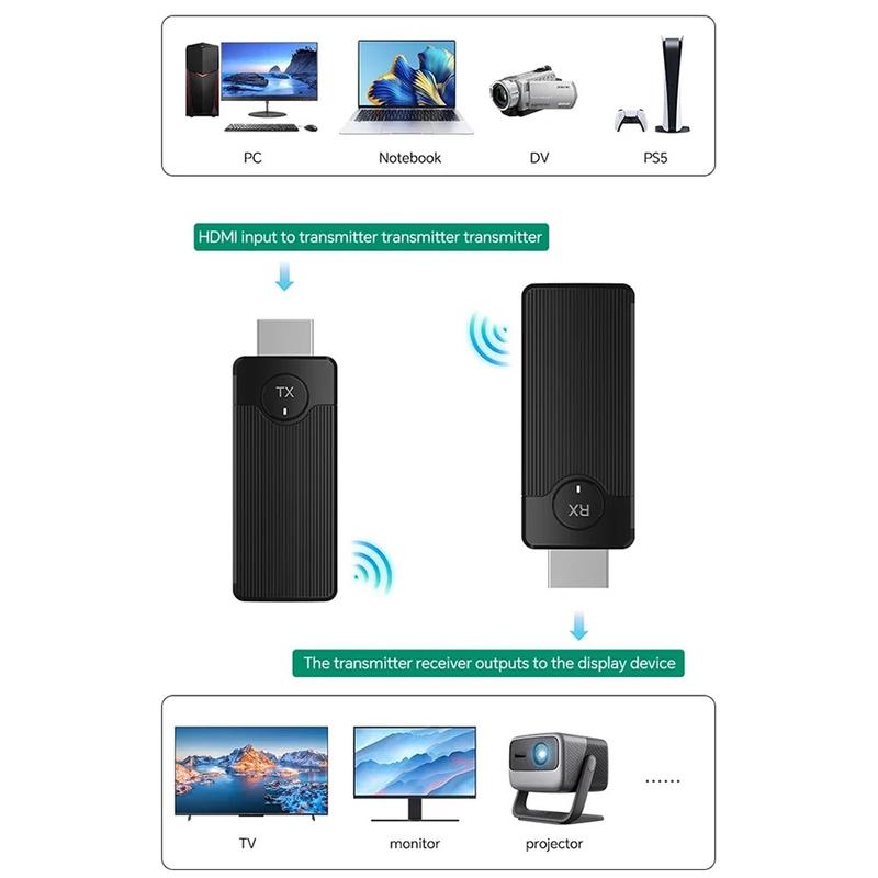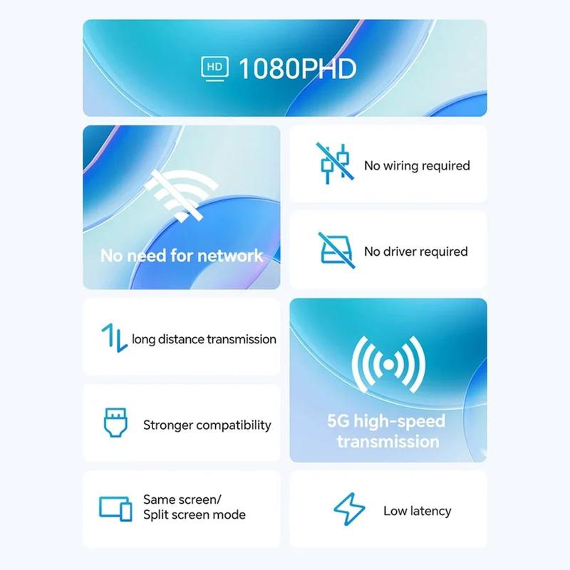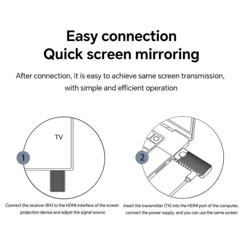 Cut the HDMI cord and share your screen in seconds. The Q50 vertical-stripe adapter beams Full-HD video and stereo audio directly from a laptop to any projector or TV up to 50 m away, using a fast dual-band 5GHz / 2.4 GHz link. No software, no drivers, no Wi-Fi network required—just plug the Type-C transmitter into your PC, the receiver into the display’s HDMI port, and start presenting. Automatic mode detection, a smooth 60 Hz refresh rate and on-board image balancing keep slides, spreadsheets and videos crystal-clear for every seat in the room.