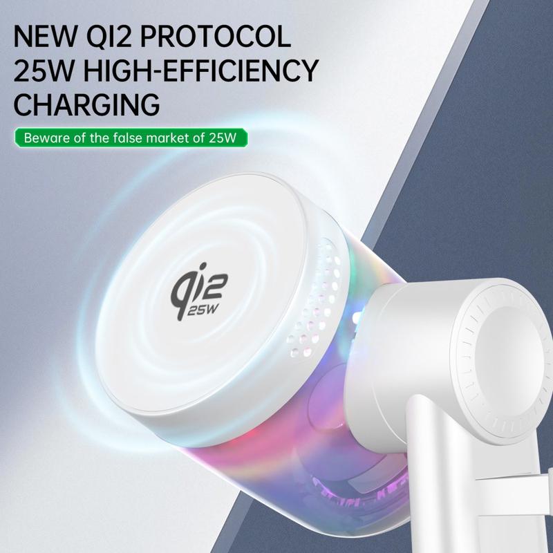 The strong magnetic holder (25W) keeps your phone securely in place, allowing angle adjustment for comfortable hands-free viewing during calls, video streaming, or charging at your desk.
