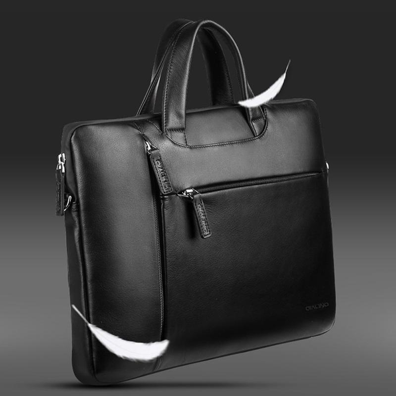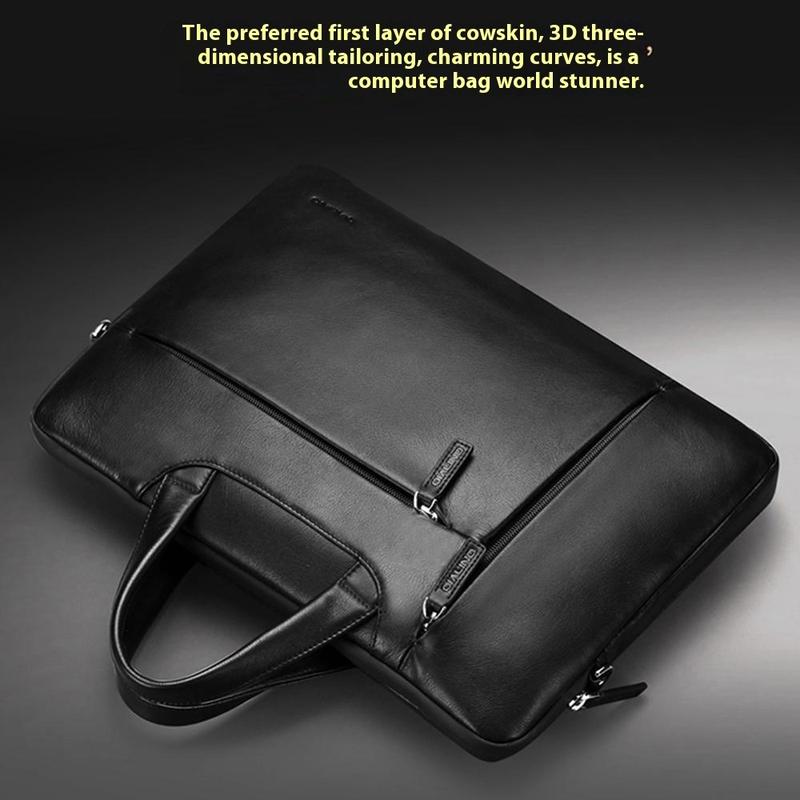 Qialino Genuine Leather Laptop Bag - Premium Cowhide Carry Case with Removable Strap & Multi-Compartment Protection