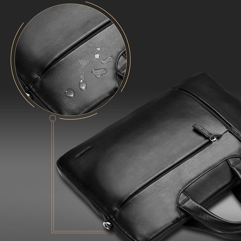 Give your notebook first-class treatment with this Qialino laptop bag, crafted from top-grain cowhide that shrugs off everyday splashes while looking effortlessly professional. A plush fleece and pearl-cotton lining cushions devices up to 13 inches, and the detachable shoulder strap lets you swap between briefcase and cross-body carry in seconds. Multiple inner pockets keep phone, power bank and notebook neatly organised for streamlined travel.