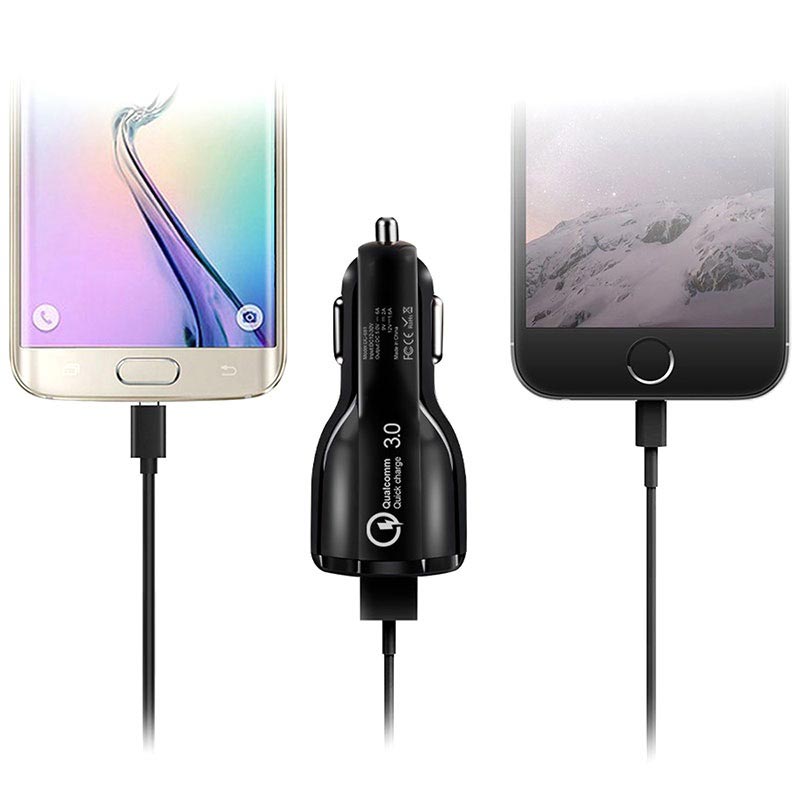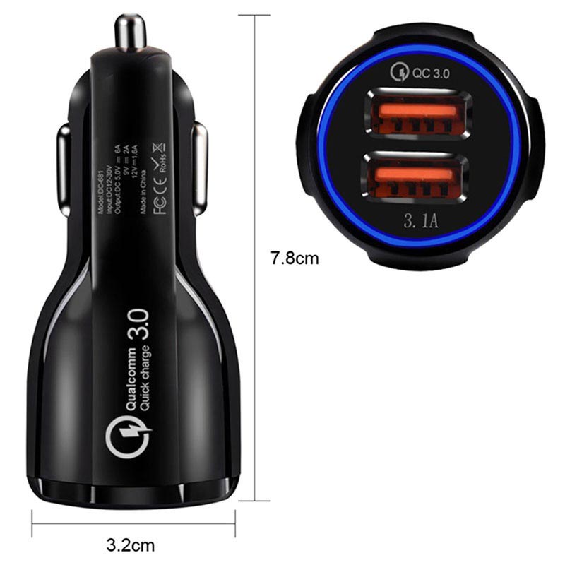 Dual Port USB Car Charger is a must-have accessory for your car, which can charge 2 devices simultaneously. Get optimal charging for your device with one port for Quick Charge 3.0 and another for a USB smart port.