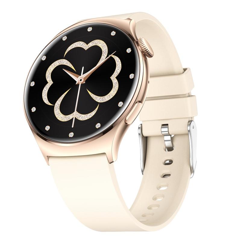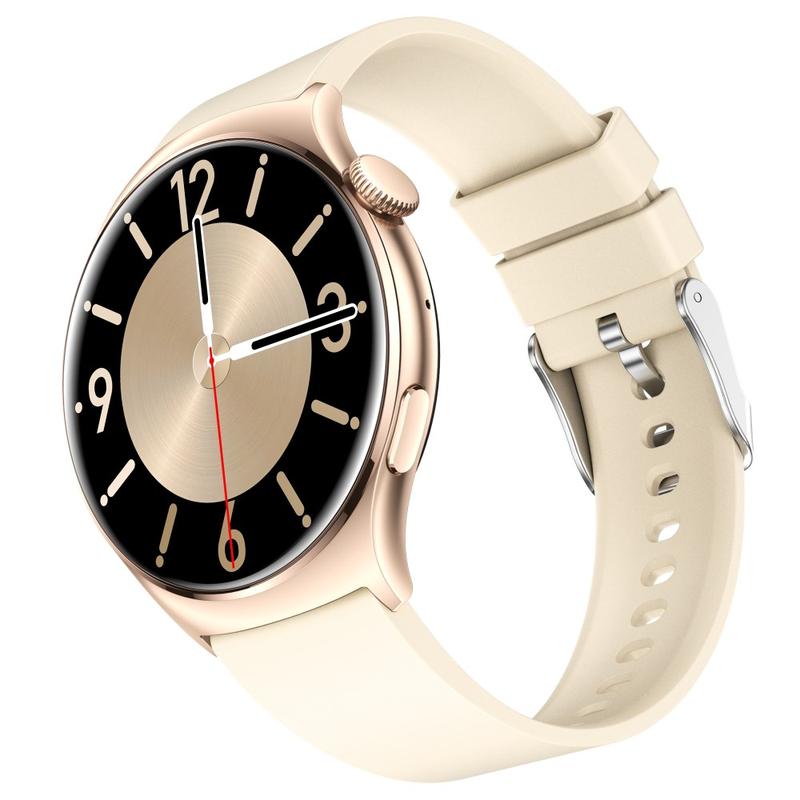 • QX10 1.43" AMOLED Display Bluetooth Calling Health Monitoring Smart Watch - Beige / Gold