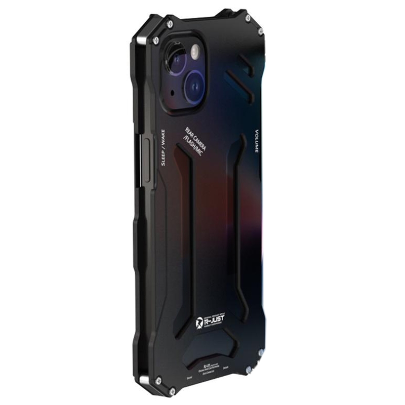 R-JUST Mechanical Armor Metal Shockproof Case for iPhone 14 Plus Anti-Fall Phone Shell Hollow Design Phone Protector