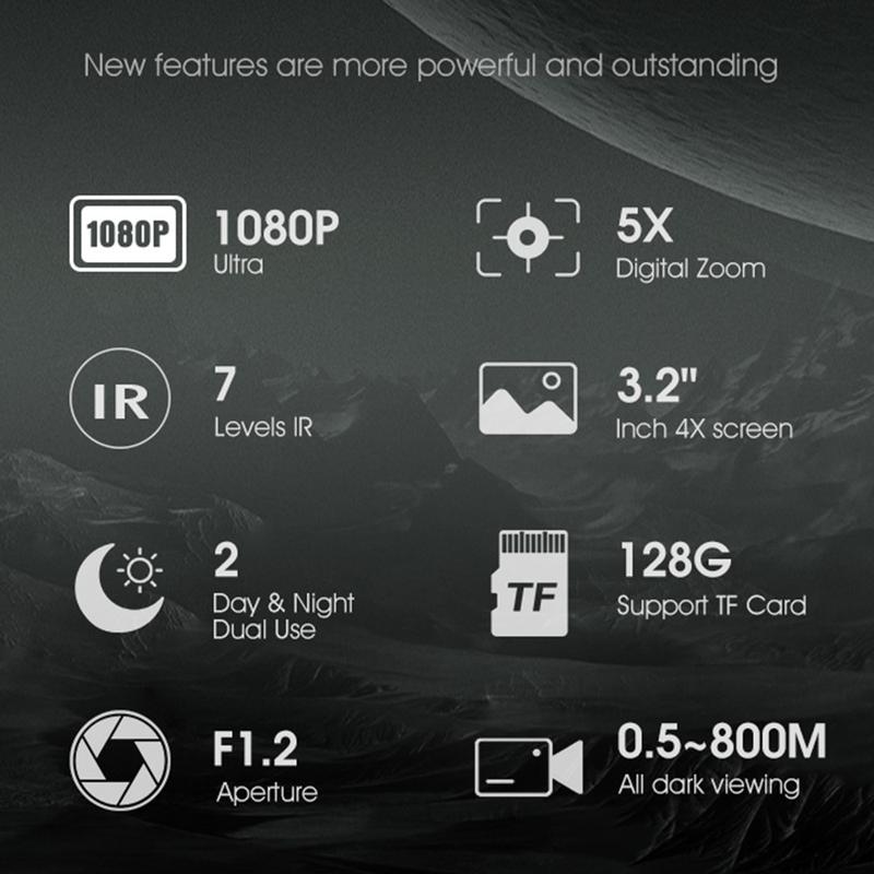 These binoculars combine powerful long-range infrared vision with high-definition recording capabilities, making them a versatile tool for both professionals and outdoor enthusiasts. The F1.2 aperture and starlight sensor deliver impressive clarity even without IR, while the full IR mode unlocks visibility up to 300 m in total darkness. With easy media export, a large 3" display and support for extended storage, the R12 provides reliability, performance and long-term value.