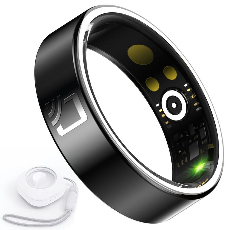 R20 Ceramic Resin Health Monitoring Smart Ring with Charging Case, Sports Monitoring, Photo Shutter - IP68 Waterproof, Bluetooth 5.0
