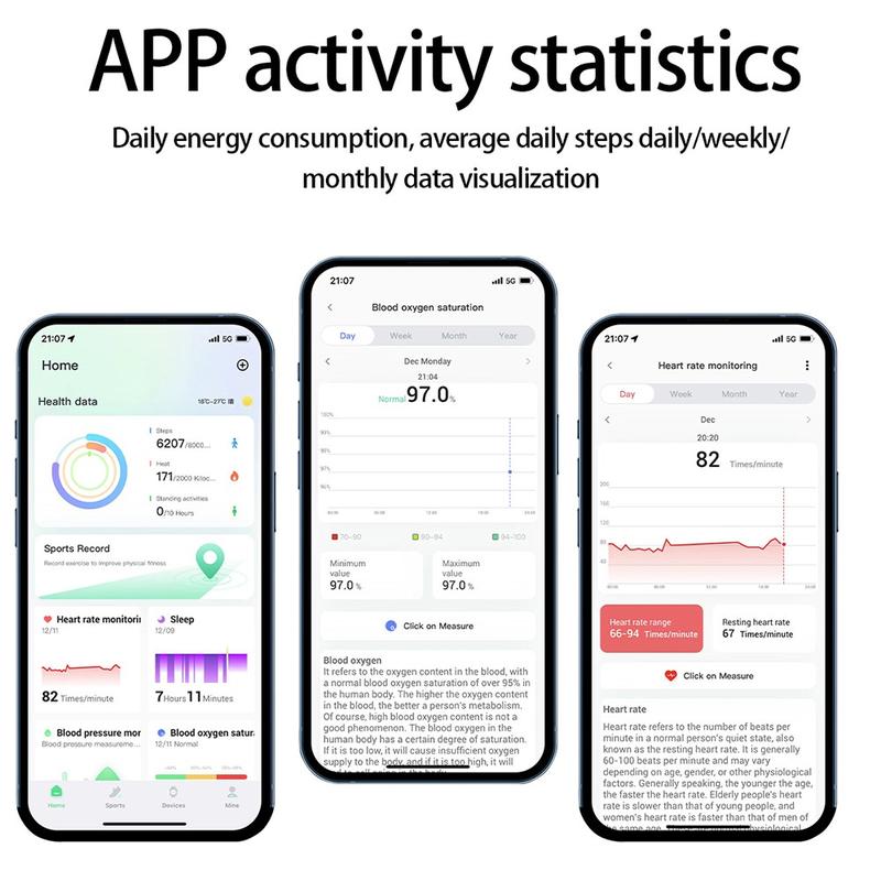 - Comprehensive Health Tracking – Monitors heart rate, blood oxygen (SpO2), blood pressure, and sleep patterns.