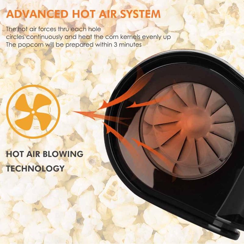 - Advanced hot-air system for fast, oil-free popcorn cooking