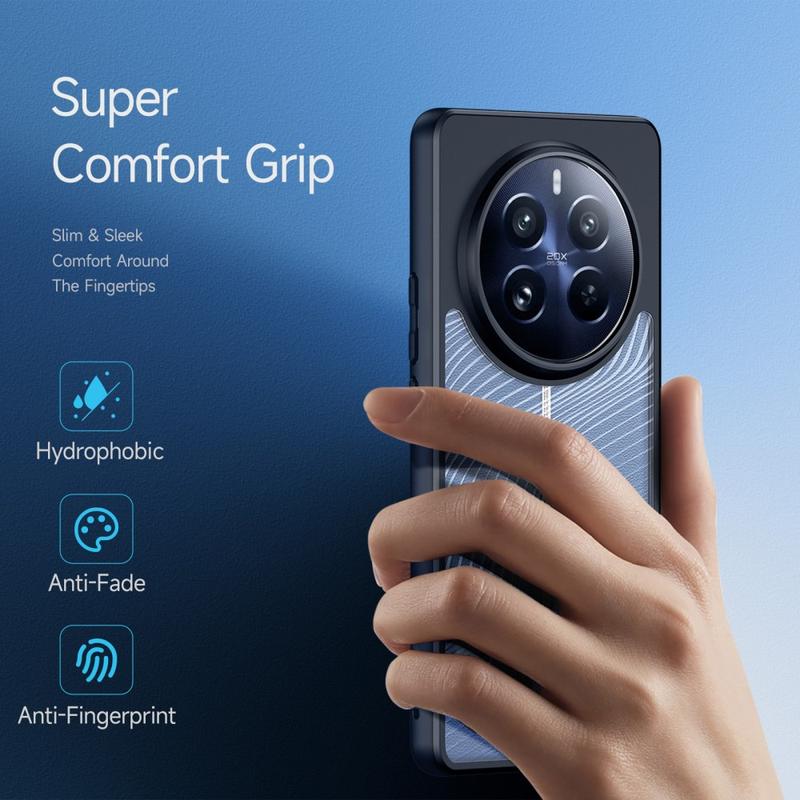 Enhance the appearance of your Realme 12 Pro, 12 Pro+ and safeguard it from damage with the Dux Ducis Aimo hybrid case. Its elegant flowing lines design not only adds a visually pleasing touch but also has anti-fingerprint, anti-fade, and hydrophobic properties for improved functionality. Moreover, the case features a precise cut-out lens to protect your camera from accidental falls, bumps, and scratches.