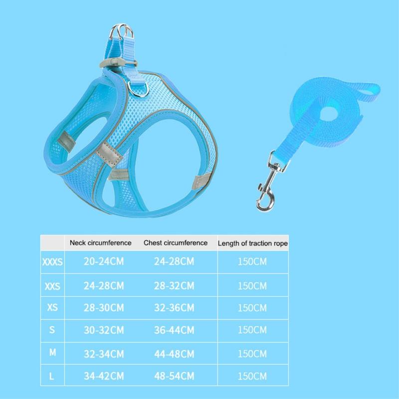 Enhance your pet's comfort and safety during outdoor adventures with our Outdoor Reflective Dog Harness and Breathable Mesh Cat Vest. Designed for small dogs and cats, this harness features a vest-style design that evenly distributes pressure, reducing strain on your pet's neck. Crafted from breathable mesh material, it ensures a soft and comfortable experience, while reflective strips enhance visibility during low-light conditions. The included 150 cm leash provides ample freedom for your pet to explore securely.