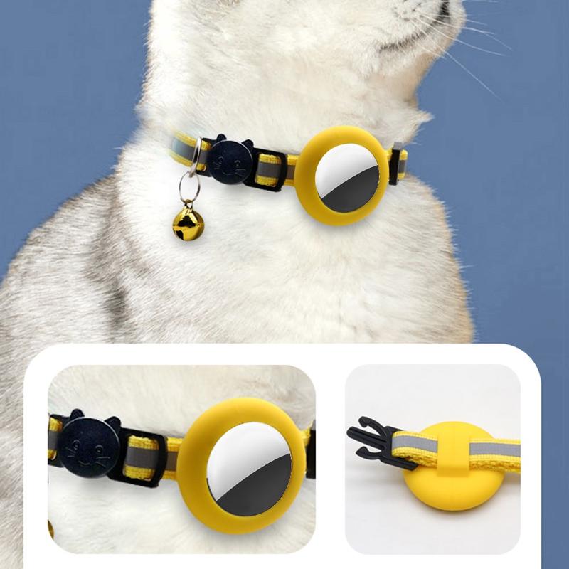 • Reflective Pet Collar with Bell for Dog/Cat and AirTag 1/2 Silicone Case with Protection Film Set