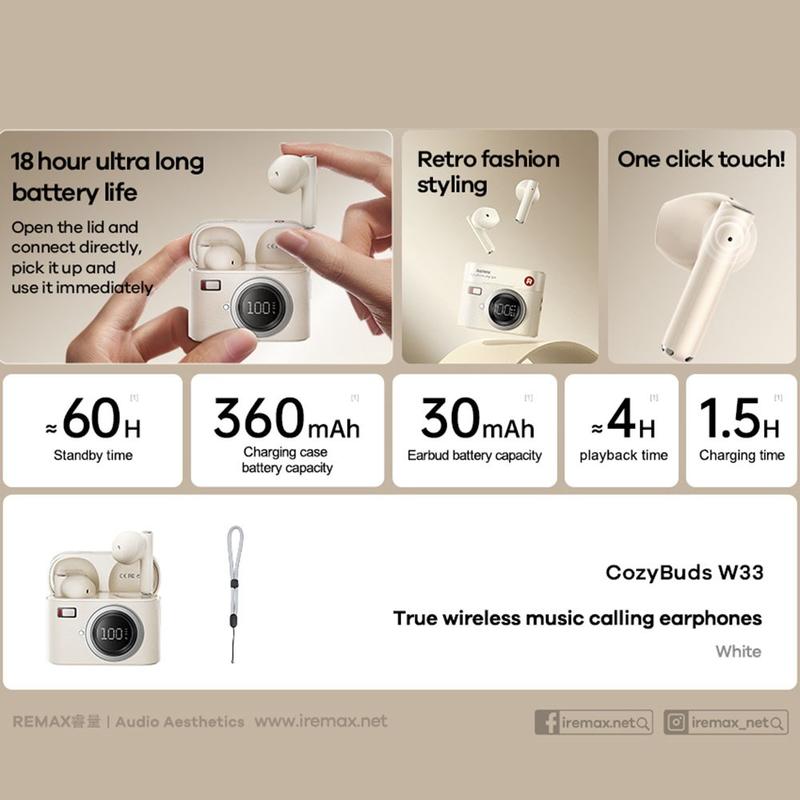 Elevate your audio experience with the Remax CozyBuds W33 True Wireless Earbuds, designed to meet the demands of modern lifestyles.
