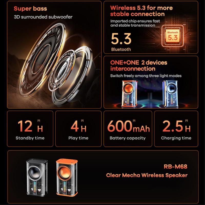 REMAX RB-M68 Clear Mecha Wireless Speaker Portable Mini 3D Subwoofer Bluetooth Speaker - Black