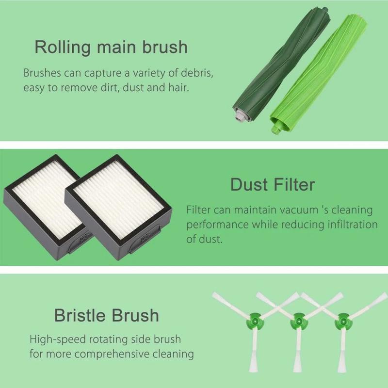 Keep your Roomba cleaning like new with this 8-Piece Replacement Parts Kit, designed for iRobot Roomba i3, i4, i6, i7, E5, E6, and E7 series. The set includes main brushes, side brushes, and high-efficiency filters to restore maximum suction power and cleaning performance. Each component is engineered for a perfect fit and long-lasting durability, ensuring your robot vacuum can tackle dust, dirt, and pet hair on any surface. Regular replacement of these parts helps maintain efficiency, prolong the life of your device, and improve indoor air quality.