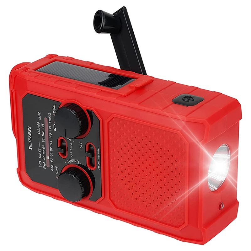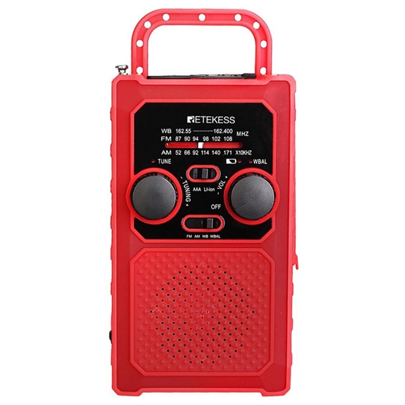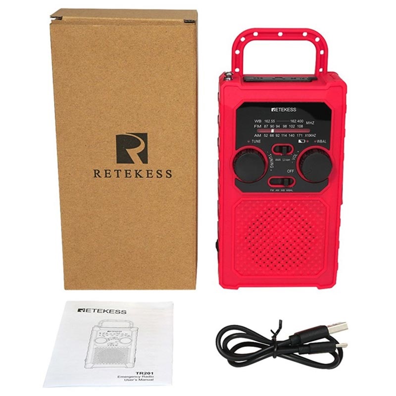 The multifunctional Retekess TR201 hand-crank radio is made to be your faithful companion during outdoor activities or emergencies. It supports four power options - hand cranking, solar power, USB port charging, or 3 AAA batteries (not included). This Retekess radio allows you to listen to NOAA weather alerts, or catch AM/FM/WB radio signals, while a loud SOS alarm will help you send a signal for help if needed.
