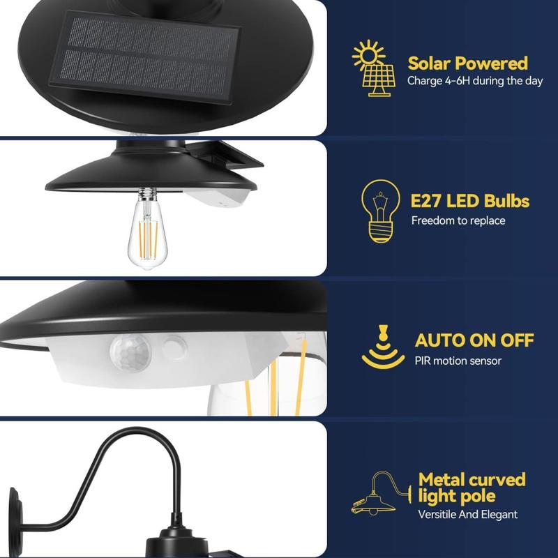Retro Solar Barn Light with Edison-Style LED & Motion Sensor – 3-Mode IP65 Outdoor Wall Lamp